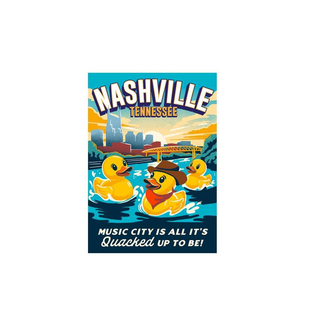 Bring a splash of Nashville charm to your fridge with this colorful magnet! Featuring cheerful rubber ducks floating down the Cumberland River with the iconic Nashville skyline in the background, it’s a playful keepsake that perfectly captures Music City’s fun spirit.